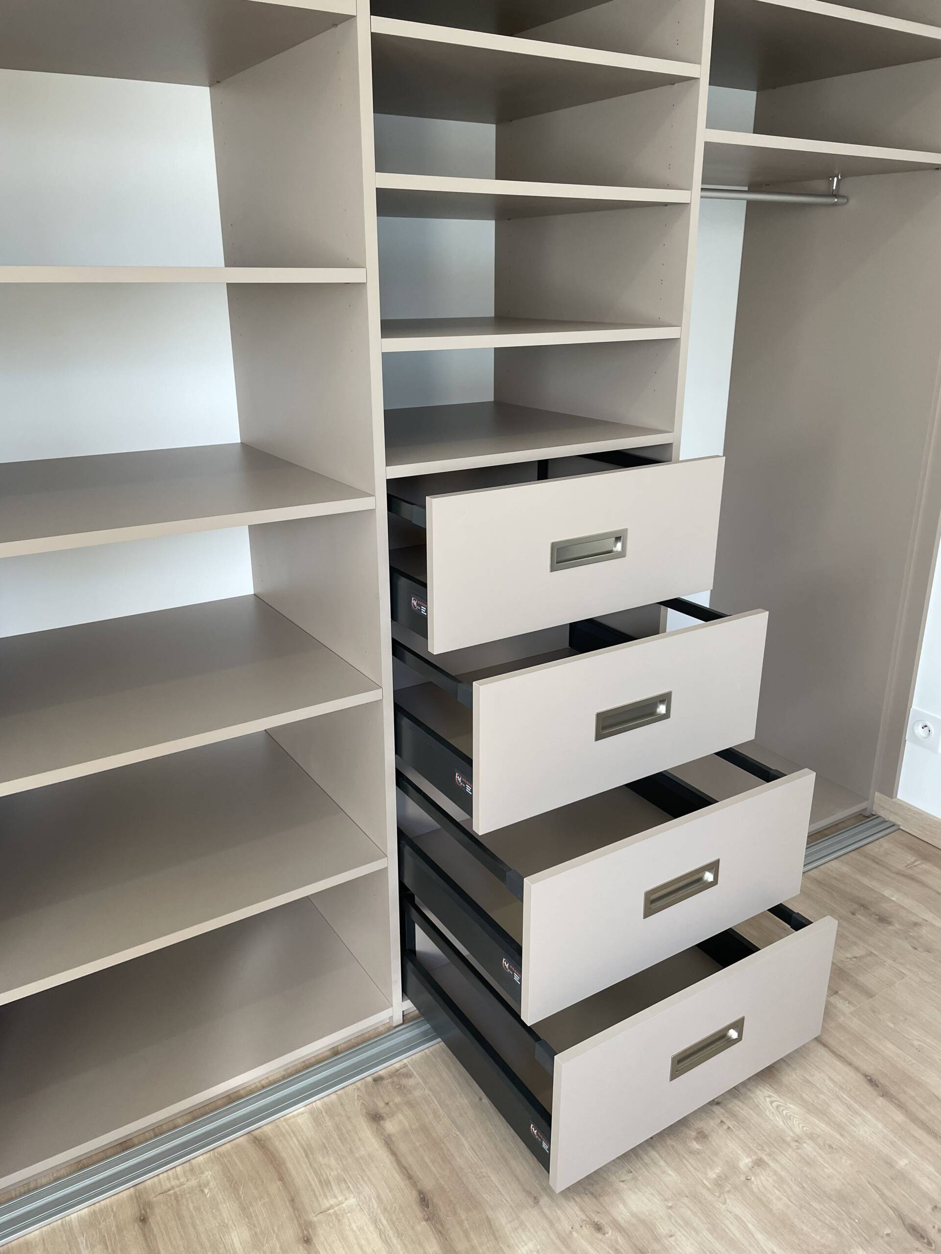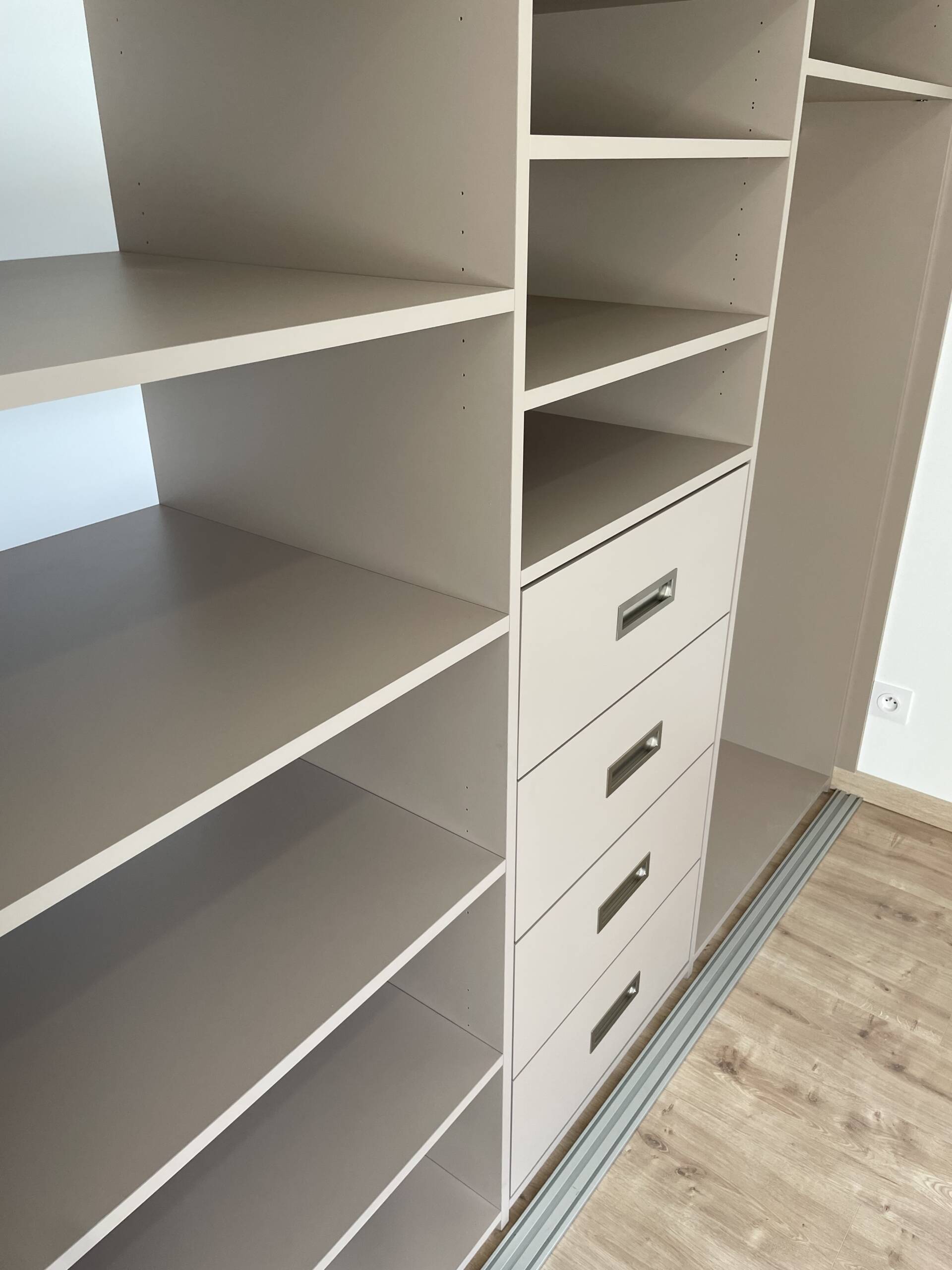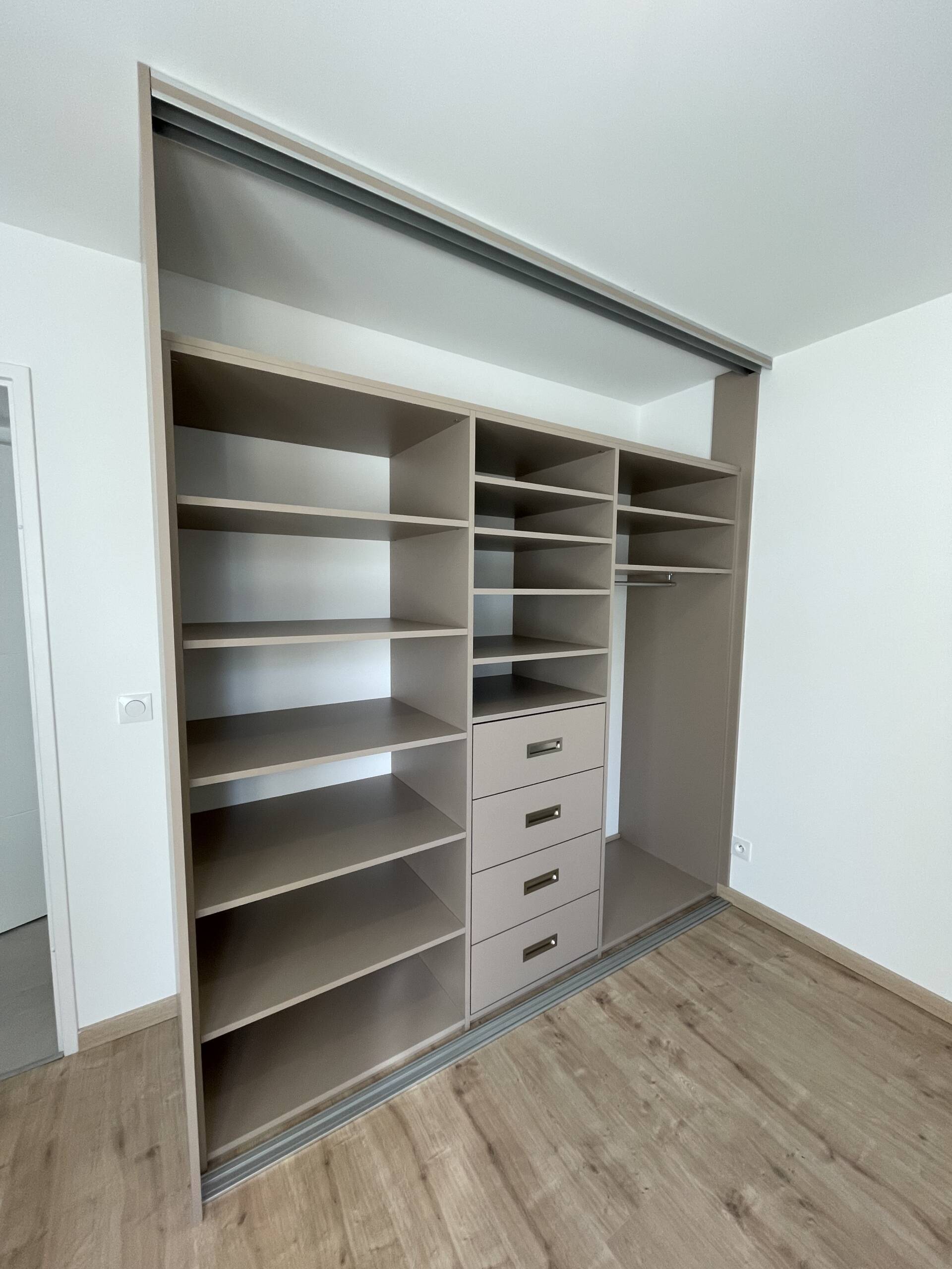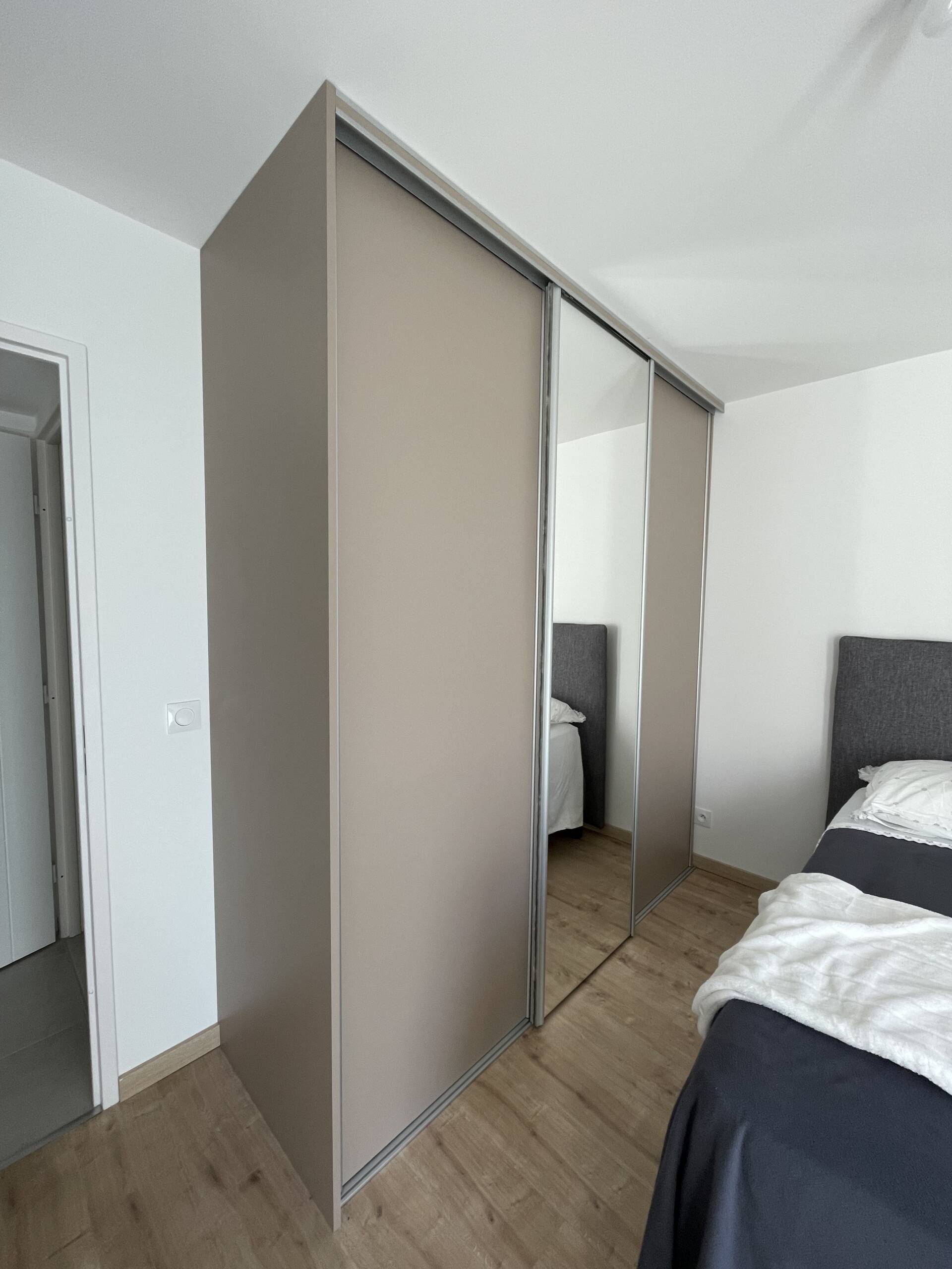 Sand26/01/2026Dressing sur mesure tout hauteur avec trois portes coulissantes dont un miroir, rangement en hauteur pour les objets volumineux, penderies, étagères et tiroirs… LieuVifDateDécembre 2025ParLM CuisineSharePartager