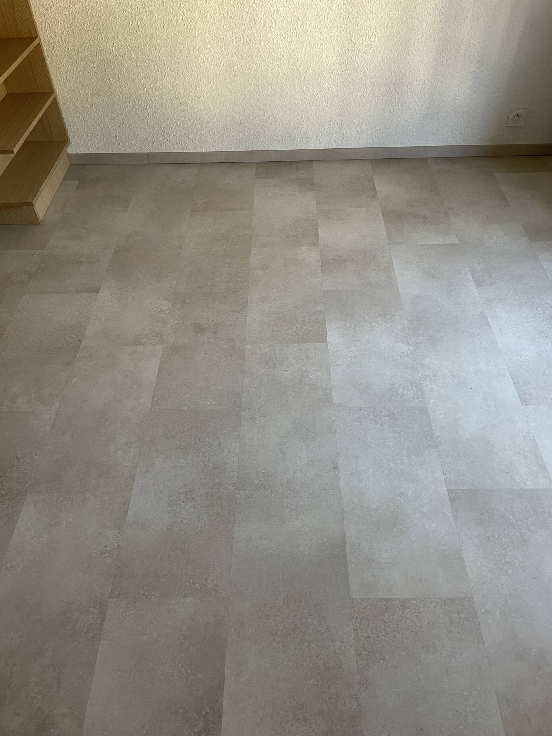 Béton gris clair26/03/2026Sol souple effet carrelage avec plinthe assortie… LieuVillard de LansDateMars 2026ParLM CuisineSharePartager